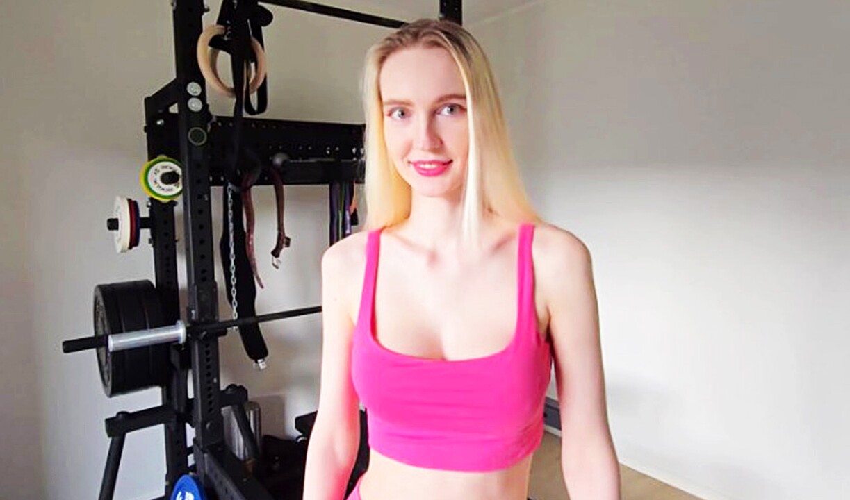 Une charmante fille en forme a des relations sexuelles dans la salle de sport avec un mec au hasard
